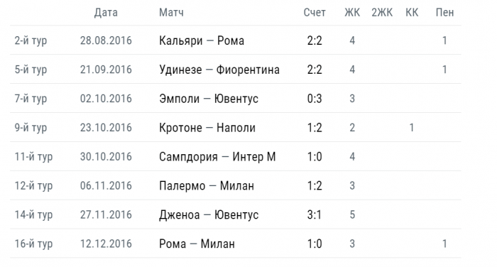 - Предупреждения. «Орлы» имеют все шансы одержать победу по ЖК в этом поединке, ведь в гостях они в среднем получают 2.7 горчичника, а «Интер» дома менее полутора.