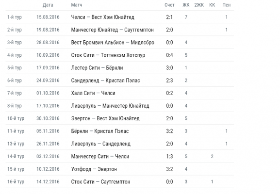 - Предупреждения. «Вест Бромвич» и «Манчестер Юнайтед» (не считая «Вест Хэма» у которого 38) являются самыми грубыми командами в Премьер Лиге - по 37 ЖК в 15 матчах. При всем этом «Дрозды» не являются грубой командой на дистанции - всю разницу они сделали в нескольких отдельно взятых матчах, поэтому в их активе всего лишь 4 матча на тотал больше (4.5). «Юнайтед» же меньше 2 ЖК на выезде получал лишь единожды (в матче против «Борнмута» 1-й тур).