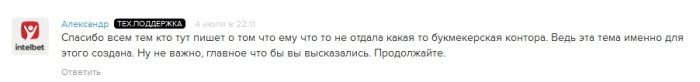 От себя же желаю всем сотрудникам интелбета скорейших решений проблем и не падать духом!!Продолжайте свое дело Господа!!Оно иногда помогает!!