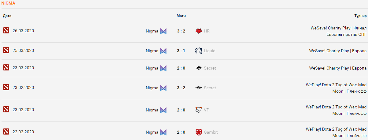 Nigma мы видели гораздо чаще, но за последний месяц она также отметилась только одним выступлением на WeSave! Charity. Трудно сказать в какой форме находятся игроки команд. Статистика последних результатов у обеих команд впечатляющая, но не стоит сильно обращать на нее внимание. Все важные матчи были сыграны довольно давно. Начало игры в 15:00 по МСК.