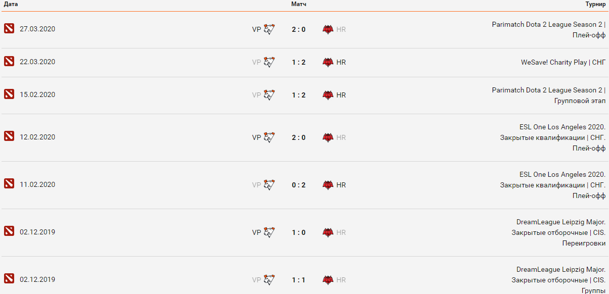 Для болельщиков из СНГ встреча между Virtus.pro и HellRaisers станет главным событием этого уикенда. В 2020 году команды успели серьезно потрепать нервы друг другу. Всего насчитано пять поединков. HR выиграла три матча, а VP сумела выиграть только две игры. За игрой команд можно было наблюдать на.WeSave! Charity и Parimatch Dota 2 League Season 2. В конечном итоге VP заняла второе место во 2-ом сезоне Parimatch Dota 2 League, выбив HR из верхней сетки. Ну а HR выиграла СНГ-дивизион WeSave! Charity, обыграв в полуфинале VP.