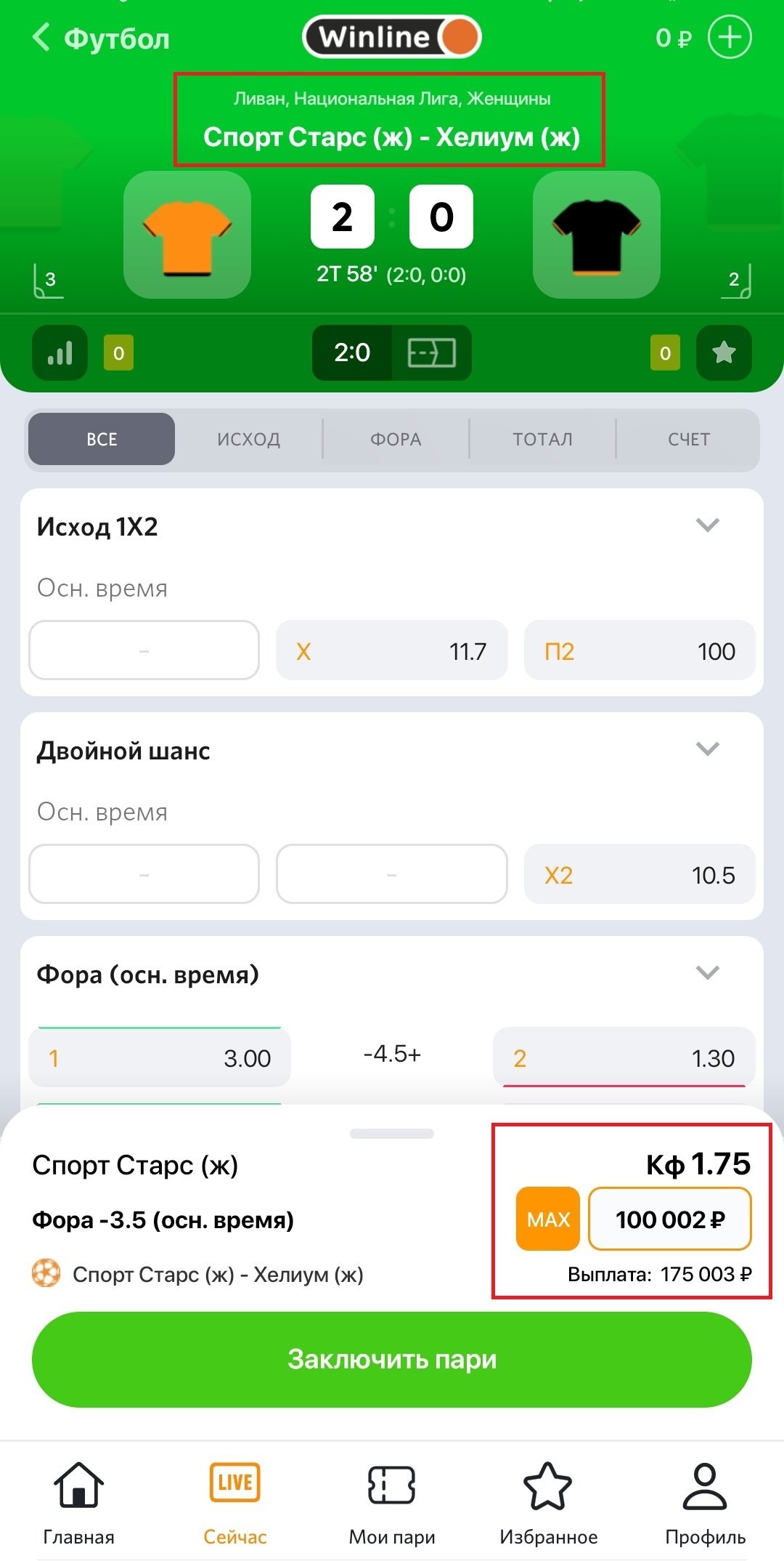 Самый большой футбол — это в первую очередь трансляции и лайв. Здесь оба российских монстра «Фонбет» и Winline в полном порядке: в лайве приложения работают быстро, в перерывах матчей так вообще ставки принимаются чуть ли не мгновенно, ставить можно крупно — на какой-нибудь женский чемпионат Ливана дадут зарядить 100 тысяч, чего уж говорить о Бундеслиге или Ла Лиге?