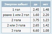 Эвертон забьет 1 или 2 мяча - да - 1.63 БК Париматч