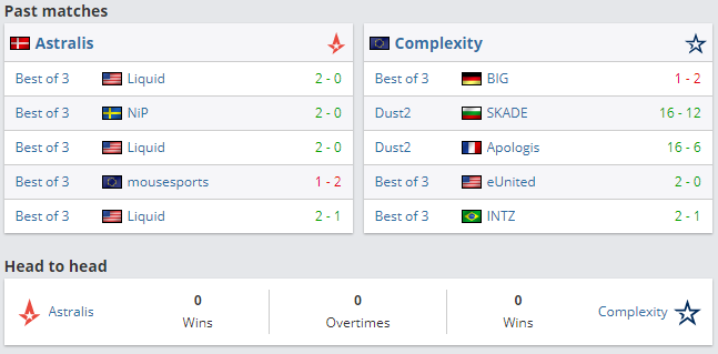 Пожалуй, единственное преимущество Complexity Gaming перед Astralis - это игровая практика. В 2020 году североамериканская команда успела сыграть уже в трех отборочных турнирах. В одном из них COL заняла 1-2 место, что даст право принять участие на DreamHack Open Anaheim 2020.