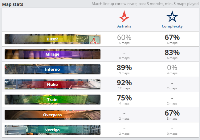Astralis будет считаться фаворитом не только в этом матче, но в и любом другом. Коэффициент на победу датчан колеблется в районе 1.05. Статистика маппула и прошедших матчей не имеет значения, так как класс игроков слишком разнится. Поэтому в первую очередь стоит рассмотреть победу датского коллектива со счетом 2:0 по картам.