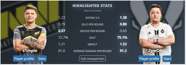 ZywOo - это один из главных козырей команды Vitality. Этот молодой французский игрок был признан лучшим игроком 2019 года. Проблема заключается в том, что против него будет выступать игрок, который занял 2 место в этом рейтинге. Речь конечно же идет о s1mple. Будет крайне интересно понаблюдать за этим противостоянием. Помимо ставок на исход можно рассмотреть ТМ раундов на одной из карт. В 5 из 7 картах был пробит ТМ 21.5 раундов. Это означает, что одна из команд частенько выигрывает с разгромом. Матч пройдет 7 февраля, начало в 18:30 по МСК.