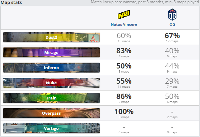 Natus Vincere по-прежнему занимает 1 место в мировом рейтинге HLTV.org. Не трудно догадаться, что СНГ-команда заняла 1 место в своей группе В (3-2). Во втором туре второго группового этапа ей будет противостоять 15-ая команда мира OG, которая заняла в своей группе С лишь 3 место. В матче за выживание OG сумел обыграть Team Vitality со счетом 2:1 по картам.