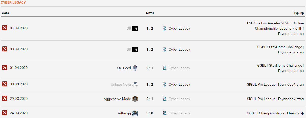 Во втором матче игрового дня Cyber Legacy попытается закрепить успех первого матча и обыграть очень грозного соперника в лице Nigma, который проиграл в первом матче. Но стоит отметить, что KuroKy & Co пришлось играть против OG. В свою очередь CL обыграла одну из самых слабых команд турнира B8. Эту победу не стоит переоценивать. В тоже время приход нового тренера в Cyber Legacy может изменить игру команду в лучшую сторону. Начало игры в 15:00 по МСК.