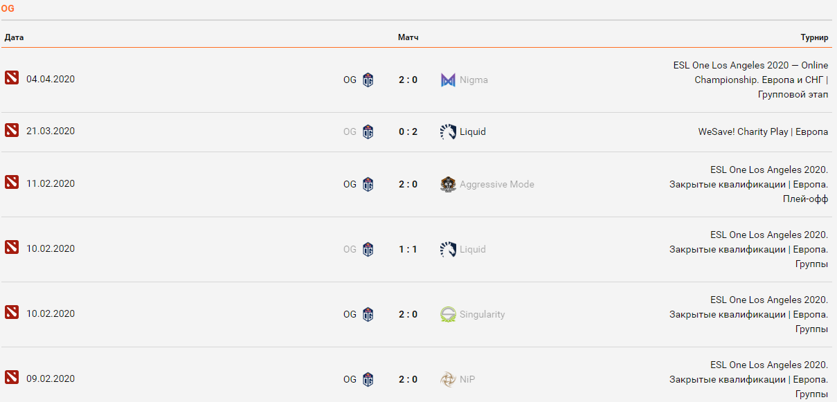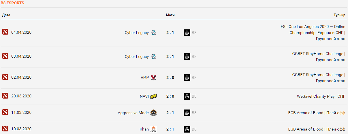 OG после яркой и уверенной победы на Nigma встречается с самым слабым соперником в группе B8, которую пытается вести за собой Dendi. Игроки OG очень уважают украинскую звезду Dota 2-сцены, он может этим воспользоваться. Кстати, B8 хоть и проиграла 6 матчей подряд, но все же в матчах брала по одной карте. Если же следовать общей логике, то OG обязана выигрывать со счетом 2:0 по картам и заслуженно занимать первое место в группе. Начало игры в 21:00 по МСК.