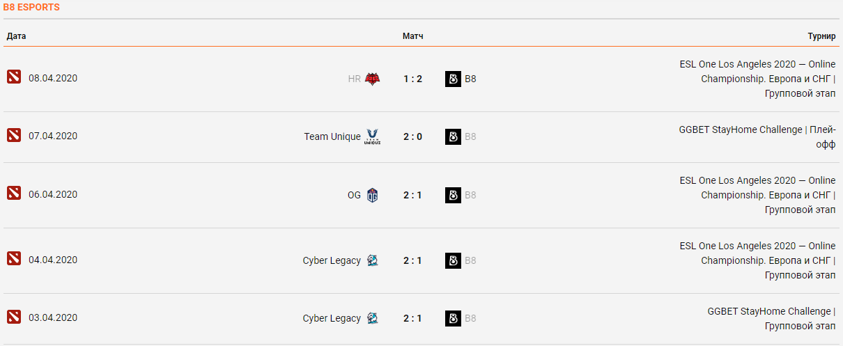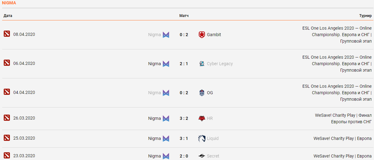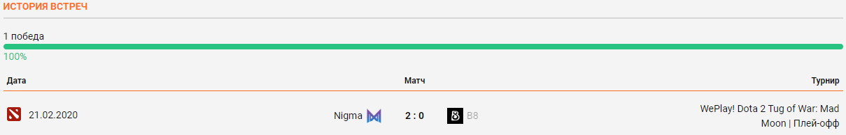 Последние матчи команды провели по-разному. Nigma проиграла Gambit со счетом 0:2 по картам, а B8 выиграла у HR со счетом 2:1 по картам. Для Dendi & Co это победа стала первой за долгое время. Team Nigma необходима победа, так как из-за разницы карт она идет на последнем месте. Начало игры в 12:00 по МСК.