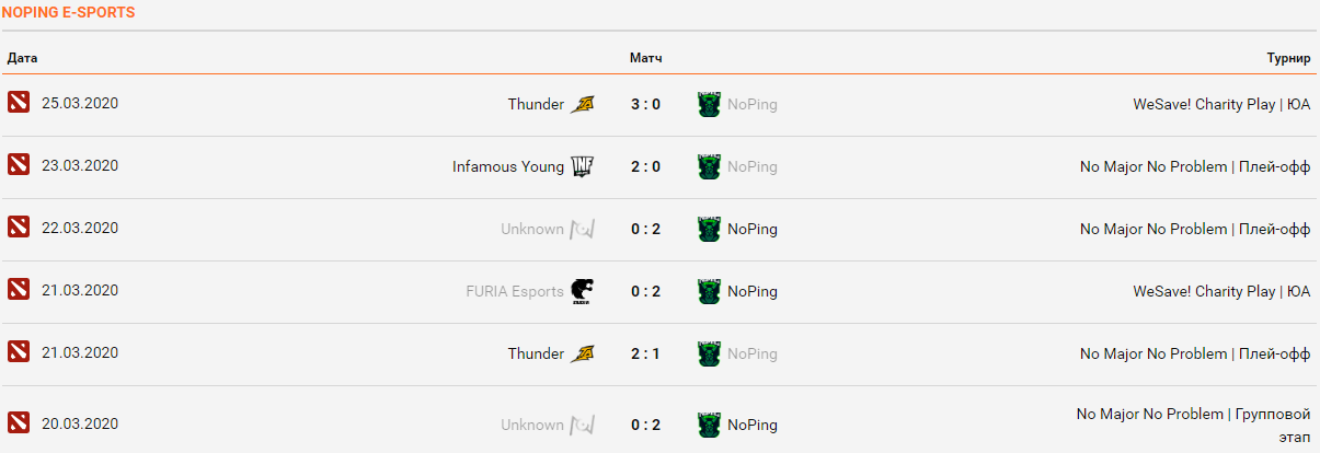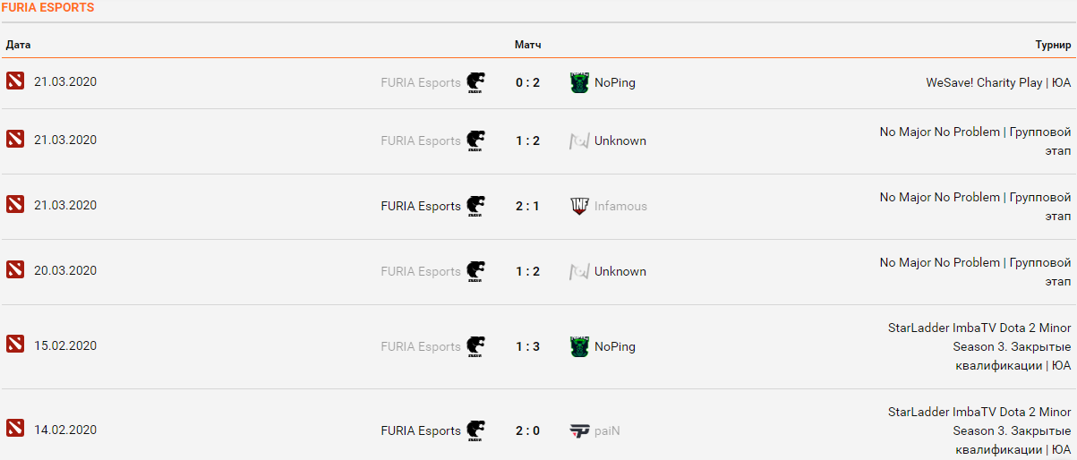 29 марта состоится только один матч группового этапа, в котором сразятся бразильские команды FURIA Esports и NoPing e-sports. Несмотря на то, что FURIA Esports более известная организация, ее Dota 2-состав далеко не самый топовый в даже по меркам региона. NoPing e-sports представляют более опытные игроки, ранее выступавшие в таких командах, как paiN Gaming, Chaos и Demon Slayers. Результаты и сумма денежных призов это подтверждают. В последний раз команды встречались на WeSave! Charity Play, тогда победу со счетом 2:0 по картам одержала команда NoPing e-sports. Начало игры запланировано на 16:00 по МСК.