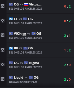 Несмотря на то, что OG проиграла два матча подряд, она все равно осталась на 2-ом месте (3-2) и сохраняет неплохие шансы на выход в следующую стадию. Для 100 % уверенности ей необходимо выиграть 1 матч.