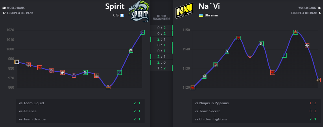 Team Spirit на данный момент занимает 2 место (3-2) в группе В и находится пока в безопасности. TS не упустила своего шанса и смогла заработать очки в тех матчах, где должна была. Речь идет о Unique и Liquid, которые занимают последние места в турнирной таблице. Из общей логики немного выпадают победа над Alliance и поражение от Chicken Fighters, но на общую картину это не влияет. TS достаточно сильный соперник. Сегодня ей предстоит сразиться с лидером группы Team Secret, которая наверняка не упустит своего и выиграет. Это означает, что в следующих матчах TS будет стараться с удвоенной энергией и мотивацией. Кстати, в четырех матчах последних матчах TS был пробит ТБ 2.5 карт.