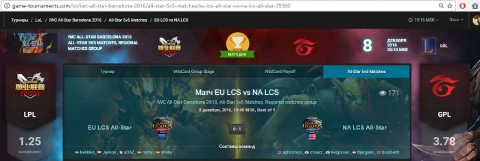 08.12 / 08:00 – League of Legends. All-Star Barcelona 2016. EU LCS – NA LCS: победа NA LCS (коэф. 1,52).