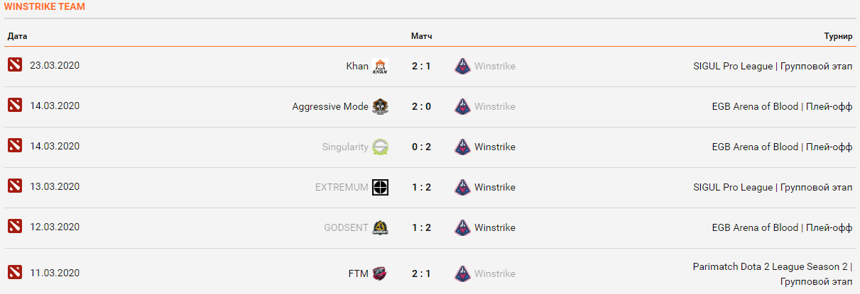В данный момент за Winstrike Team выступает молодая и талантливая команда (ex-Modus Unity). Руководство подписало этот состав в феврале этого года, после удачного выступления в квалификации ESL One Los Angeles 2020 CIS Open. Звездная пятерка во главе RodjER была распущена. До этого данный коллектив особо нигде не светился.