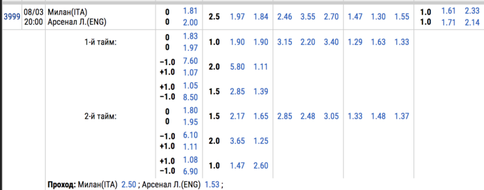 Атлетико – фаворит турнира, Симионе настроен решительно, сказал что будет играть только основа и ему нужен этот турнир. Сказать нечего, Атлетико топ команда и шансы выиграть у них турнир не меньше Арсенала, но если им и суждено будет сыграть друг против друга до финала, потянуть Арсенал за 5,5 вполне можно, если будут играть в финале возможно и перекроюсь. В чемпионате у матрасников все пучком, с большой долей вероятности второе место останется их.