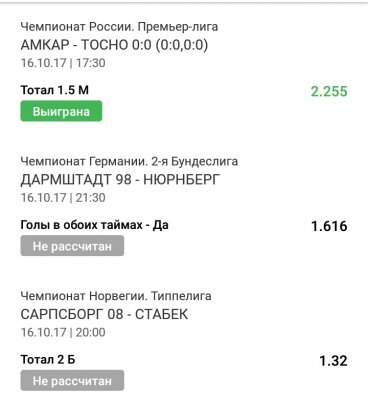 Сейчас сидел бы, радовался проходу ставки на Амкар, а так подсел на эти "ваши" экспрессы))))