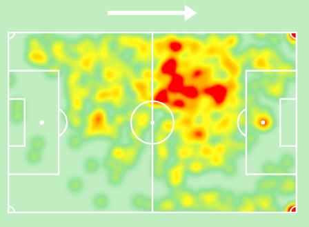 57% успешных обводок разгоняют атаку в левой и центральной части полуфланга, именно Мира тащит мяч вперёд.
