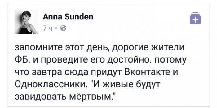 "Мне начинает казаться, что если Порошенко заставит жителей страны обмазаться *******, но аргументирует это санкциями против России, миллионов 10-15 обмажутся сами и обмажут тех, кто воздержался".