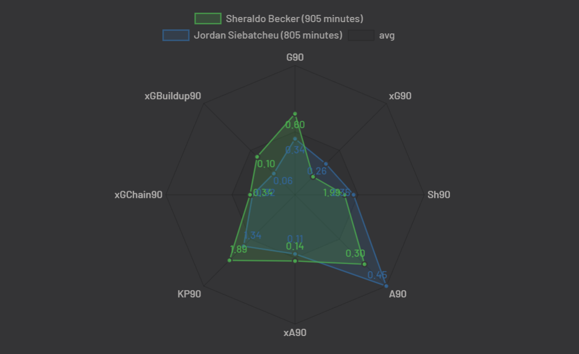 Разделять ребят и рассматривать по отдельности каждого нет смысла, потому что в этом сезоне Бекер сыграл всего на матч больше. Поэтому и статистика будет парной. Итак, Сибачо и Бекер в этой Бундеслиге:
