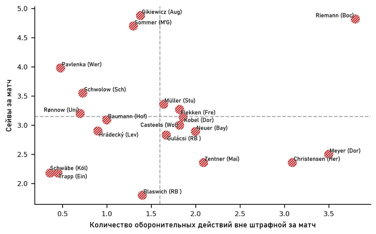 Рённов хорош во всех аспектах, но без перегибов: не умеет ярко летать кошкой, как Янн Зоммер из «Гладбаха», но кидается в угол, когда надо; не убегает в центр поля, как Нойер, но хорош в игре ногами. Кипер «Униона» просто не допускает ошибок благодаря идеальной игре на линии. В недавнем матче с «Дортмундом» как раз можно уловить пару моментов.