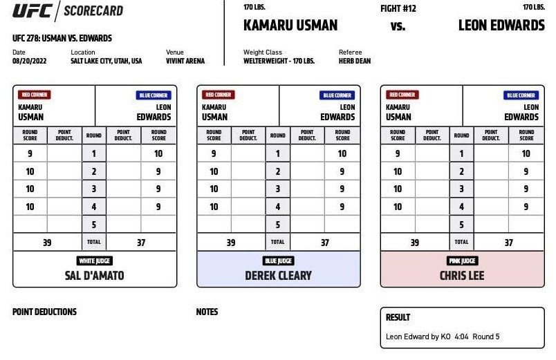 Усман слишком рано поверил в то, что его контроль в партере и короткие ударные серии обеспечили ему победу на судейских карточках. Он думал лишь о том, как довести бой до решения и снова сохранить свой пояс без лишнего риска.