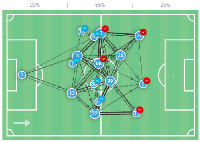 Типичный билд-ап команды сводится к контролю середины поля и банальному выдавливанию оппонентов к своим воротам.