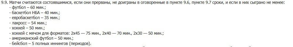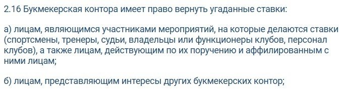 В целом все пункты из этого блока звучат логично (кроме последнего), а потому вряд ли вызовут спорные ситуации игроков с конторами.