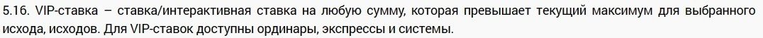 Возможность заказать VIP-ставку есть в «Бетсити» и «Зените»: по запросу к администрации игрок может увеличить лимиты по ставке на конкретный купон. Если контора одобряет запрос, то она увеличивает не только максимум суммы ставки, но и максимальный выигрыш.