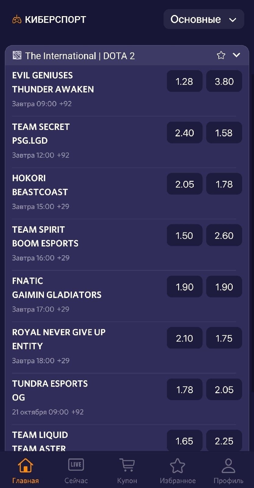 Подробную роспись на топовые киберспортивные события можно найти в большинстве российских БК — проблем с тем, где на всё это поставить, точно не будет.