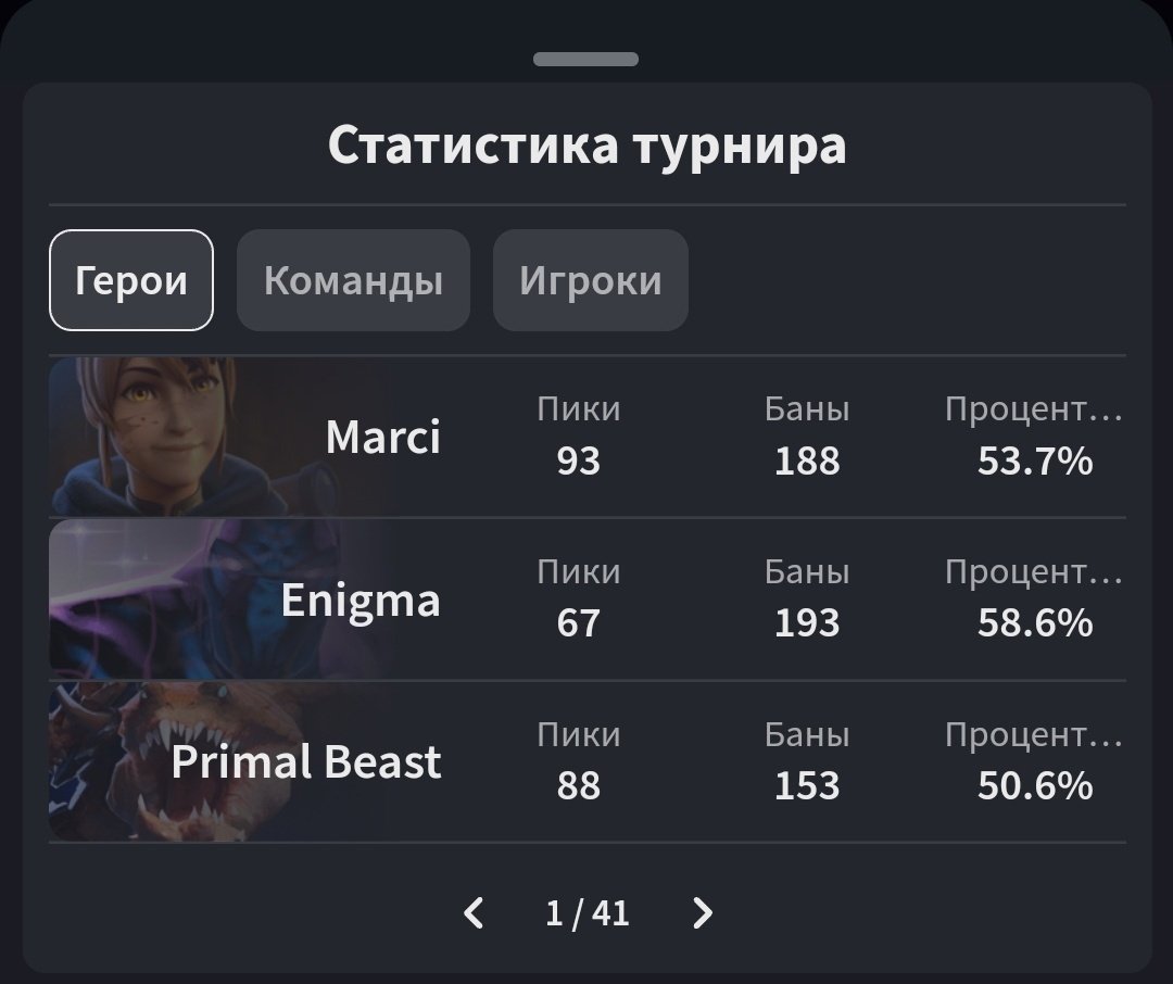 3. По турниру. Результаты, расписание, наиболее ценные герои, наиболее популярные герои и т.д.