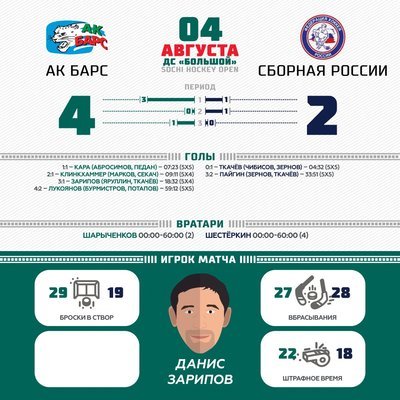 Казанцы уже провели свой дебютный матч на турнире ,уступив вчера "Локомотиву" 4-2,а вот победители прошлогоднего турнира Олимпийская сборная России,именно этим матчем начинает свой путь в Сочи.
