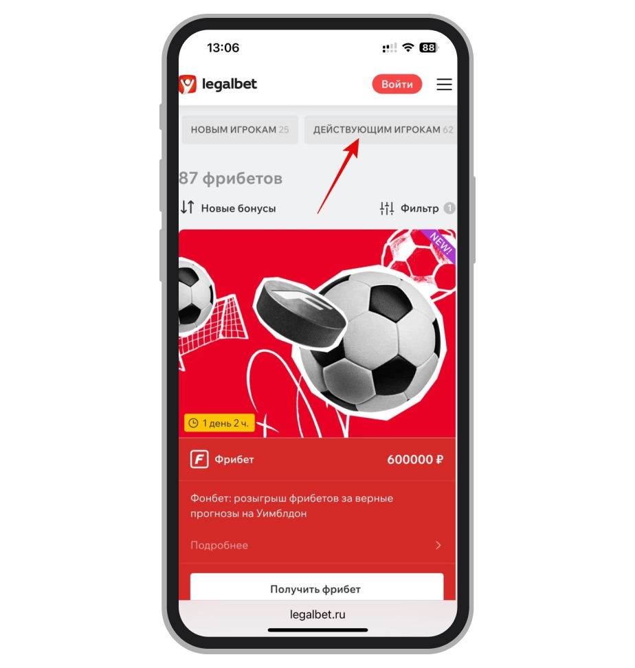 Например, есть приветственные фрибеты букмекеров — их не получить, если зарегистрировались до начала акции. Значит, ни один действующий игрок не сможет получить такую бесплатную ставку. Эти акции собраны на отдельной странице сайта Legalbet, нужно просто выбрать «Действующим игрокам».