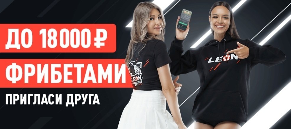 — «Леон»: фрибеты за приглашённого друга. До 18 000 рублей каждому, кто поделится реферальной ссылкой с незарегистрированным в БК игроком.