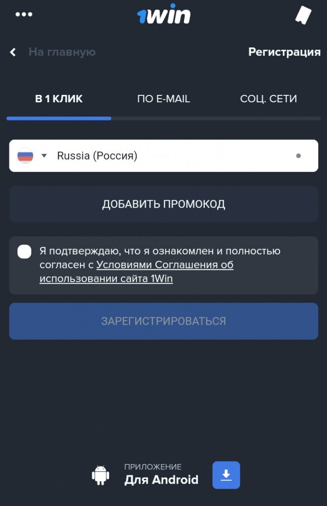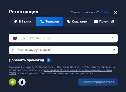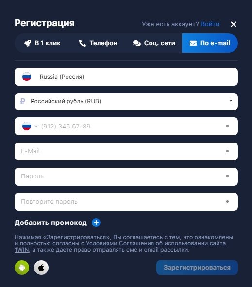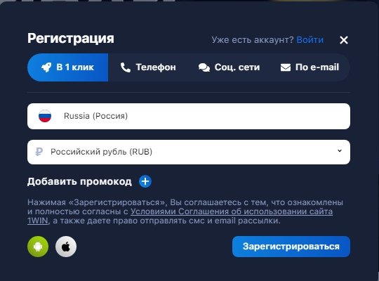 Создать учетную запись на официальном сайте 1WIN можно 4 способами: