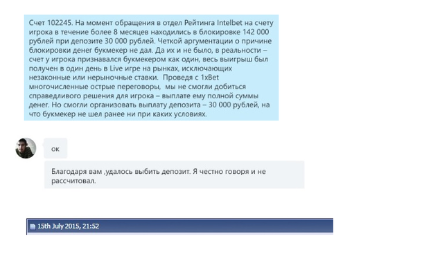 *****: с большим трудом удалось выбить,по другому не сказать выплату по этим двум купонам.естественно это было сделано потому что суммы ставок были не несколько тысяч,а несколько сотен.Скажем так они не стали из за мелочи кидать и человек был не новичок,а проженный игроман и начал их гасить за такой кидок. Все понимают,что если бы ставка была покрупнее или человек уровня их консультанта онлайн,то никакого выигрыша он бы не увидел.