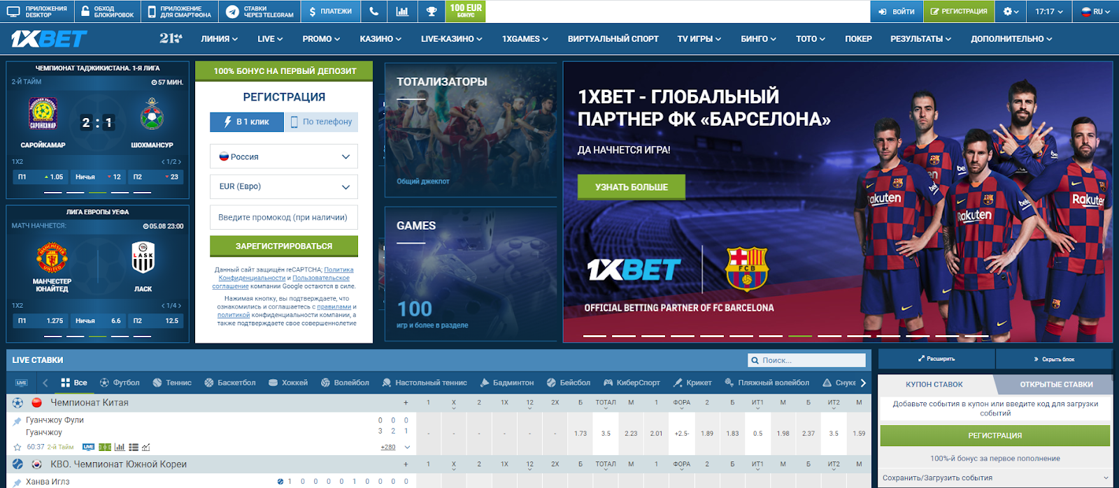 Сайт БК 1xBet (в доменной зоне com) доступен на 60 языках и предлагает для клиентов не только возможность делать ставки на спорт, но и играть в казино, LIVE-казино, виртуальные игры, TV-игры.