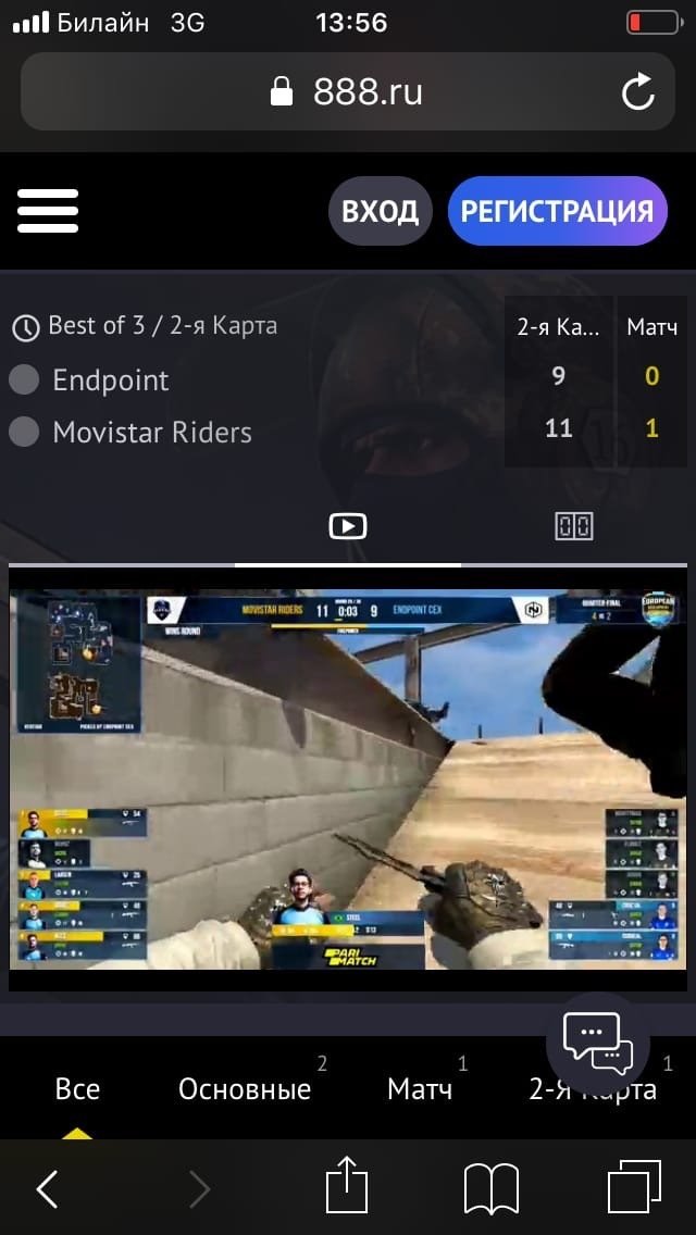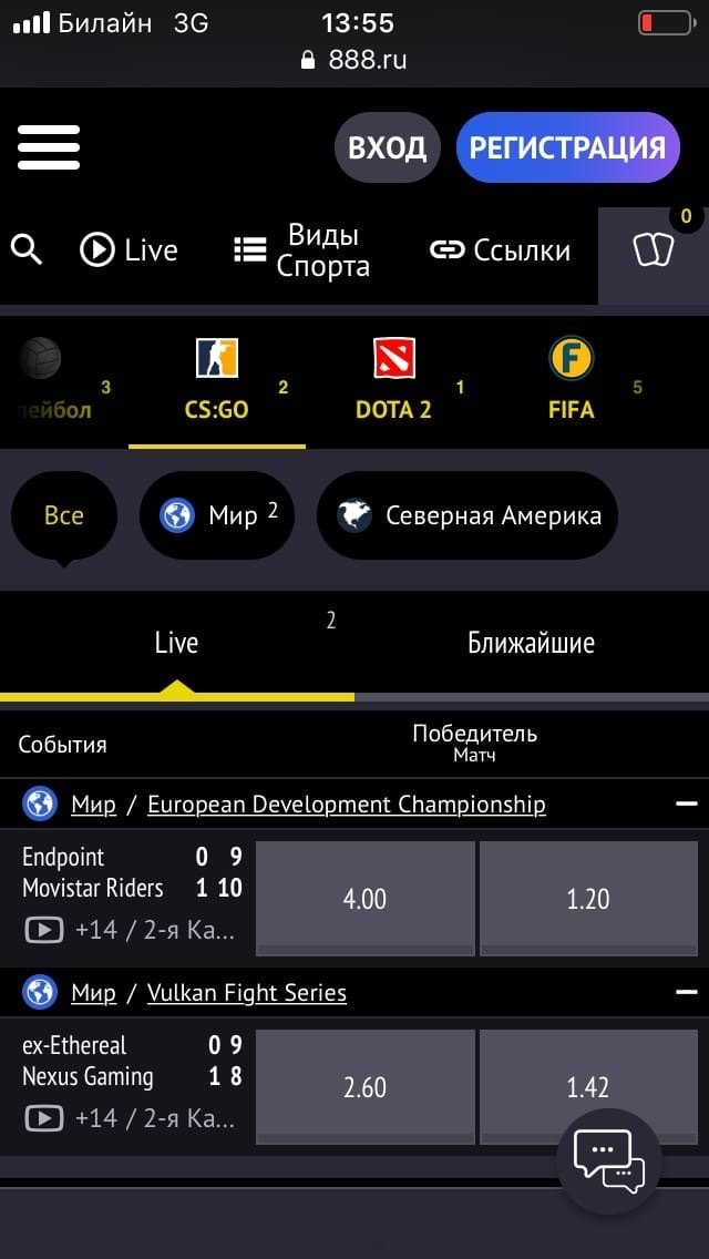 У 888.ru есть приложения для смартфонов на Android и iOS. Приложение для айфона устанавливается из App Store, как обычно. Apk-файл для установки Андроида можно скачать с сайта букмекерской конторы. Приложение очень компактно и при этом предоставляет все возможности десктоп-версии, включая просмотр прямых трансляций событий — в основном по киберспорту.