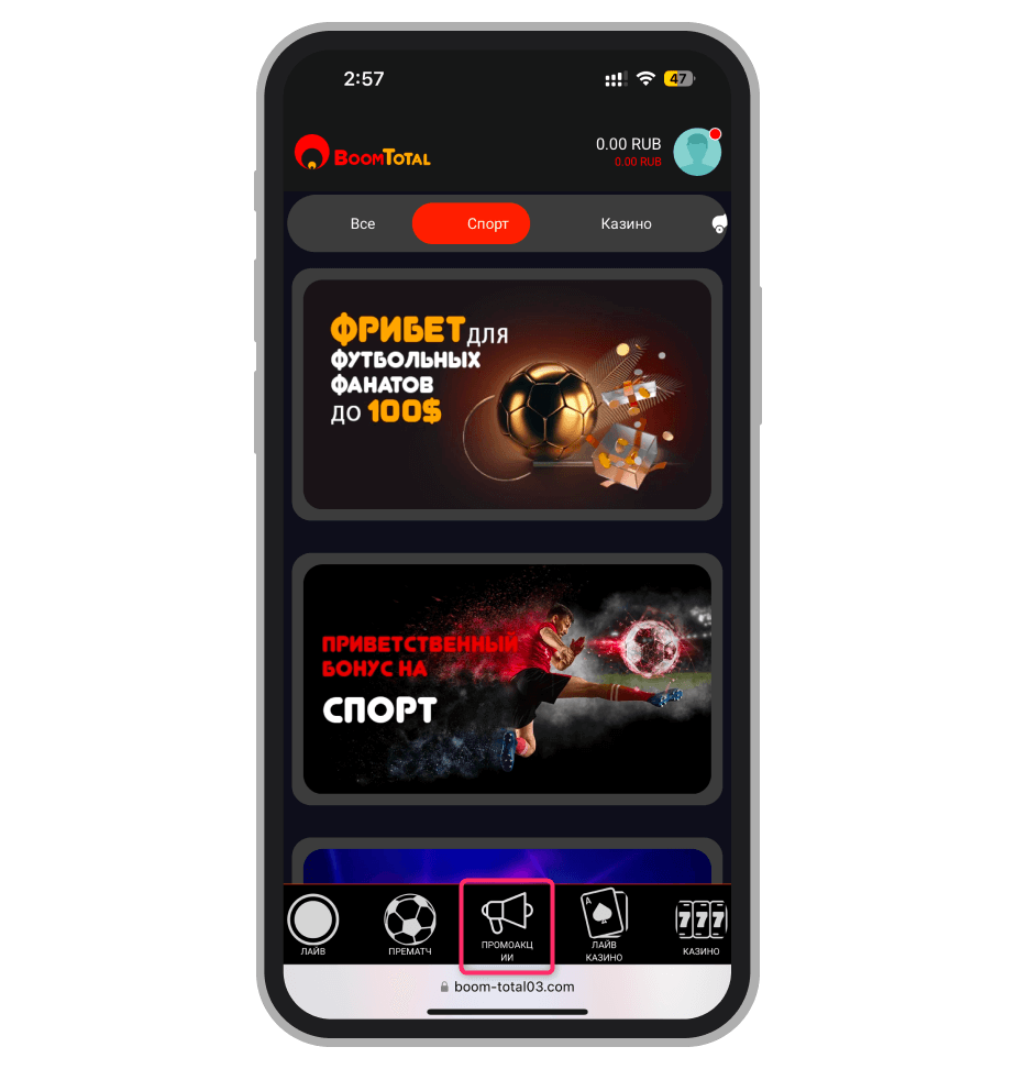 Нет. BoomTotal не имеет лицензии на работу в Российской Федерации и не имеет права принимать ставки от граждан РФ.
