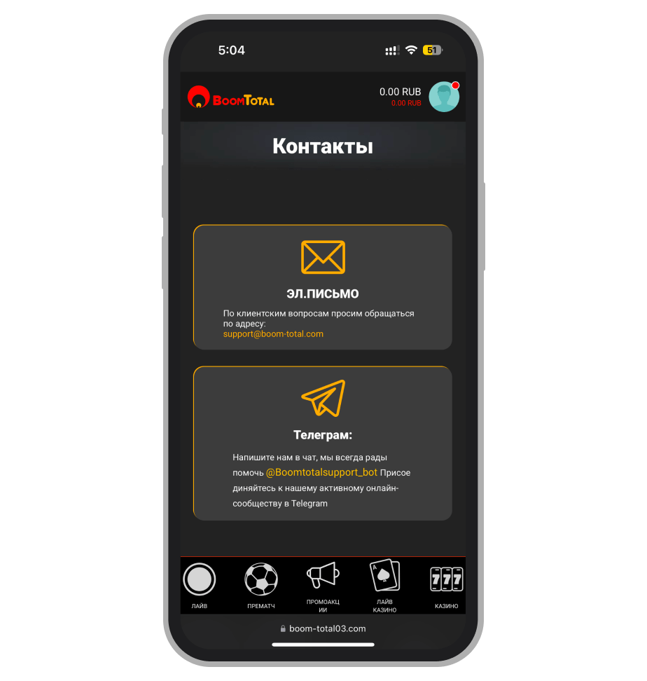 Чат-бот в Telegram: @Boomtotalsupport_bot.