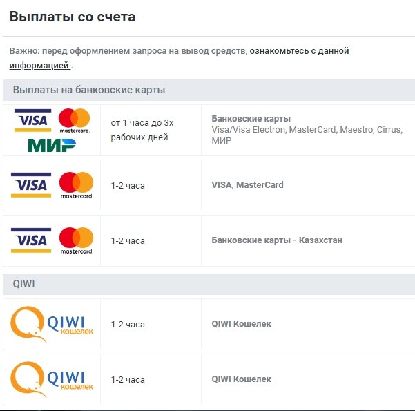 на банковские карты: Visa/Visa Electron, MasterCard, Maestro, Cirrus, МИР;