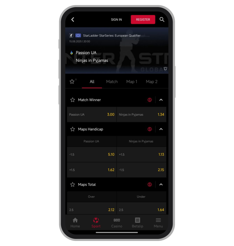 Роспись на матч CS2 в Mobet