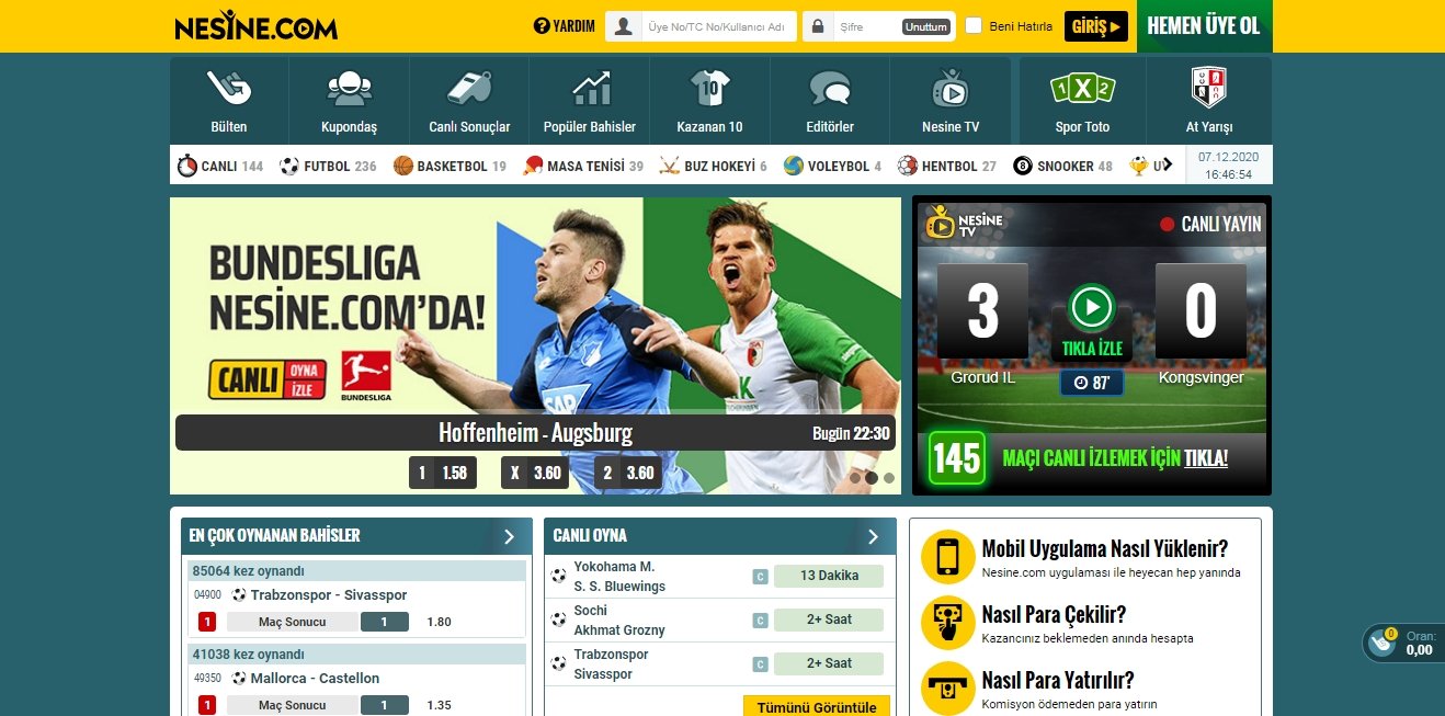 Официальный сайт букмекерской конторы расположен по адресу nesine.com, у сайта есть только версия на турецком языке.