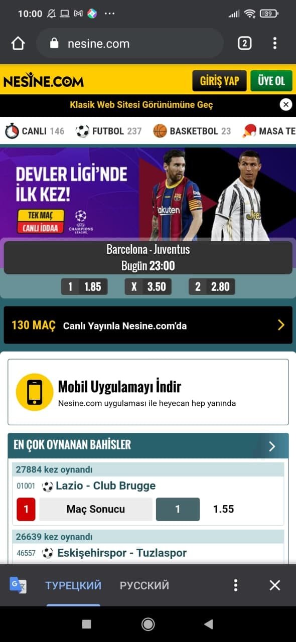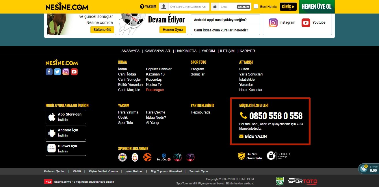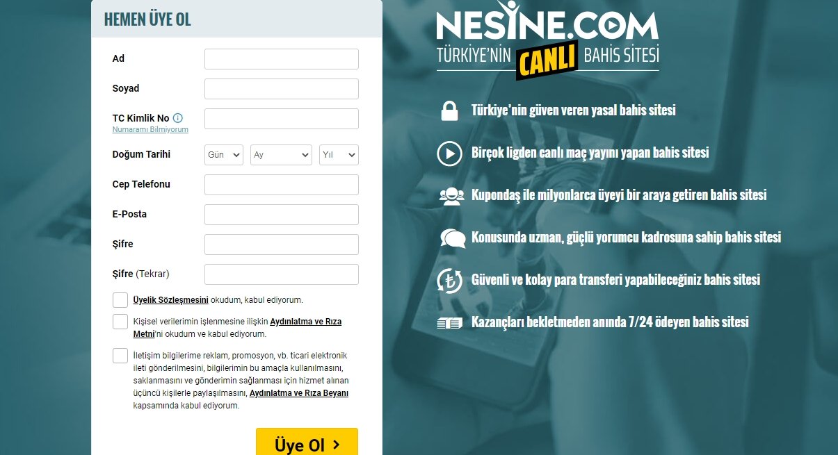 Официальный сайт букмекерской конторы расположен по адресу nesine.com, у сайта есть только версия на турецком языке.
