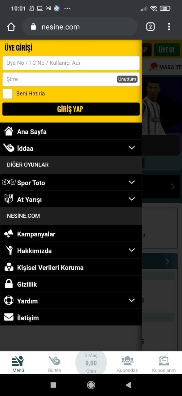 У Nesine есть версия сайта, адаптированная для мобильных телефонов и планшетов. Она практически ничем не отличается от основного веб-ресурса. Обладатели гаджетов могут проверять свой аккаунт, делать ставки, смотреть онлайн-трансляции и многое другое.