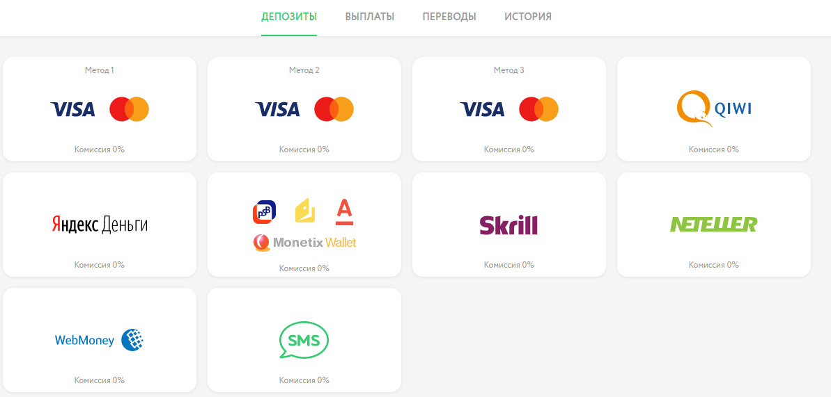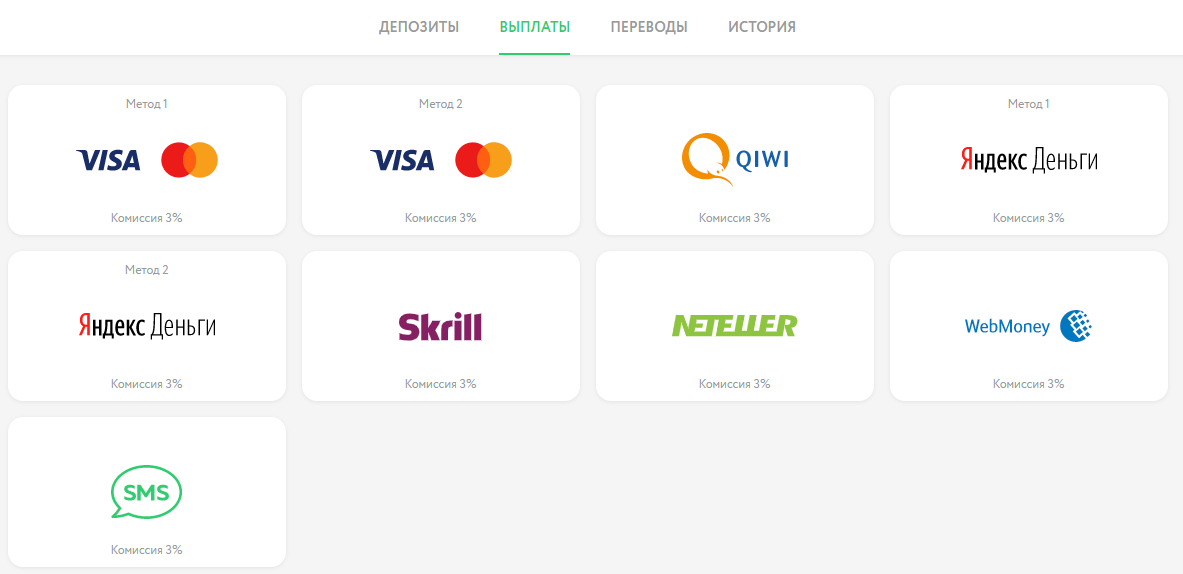 Для вывода выигрыша доступны те же платежные способы транзакции, что и для депозита, за исключением кошелька Monetix.