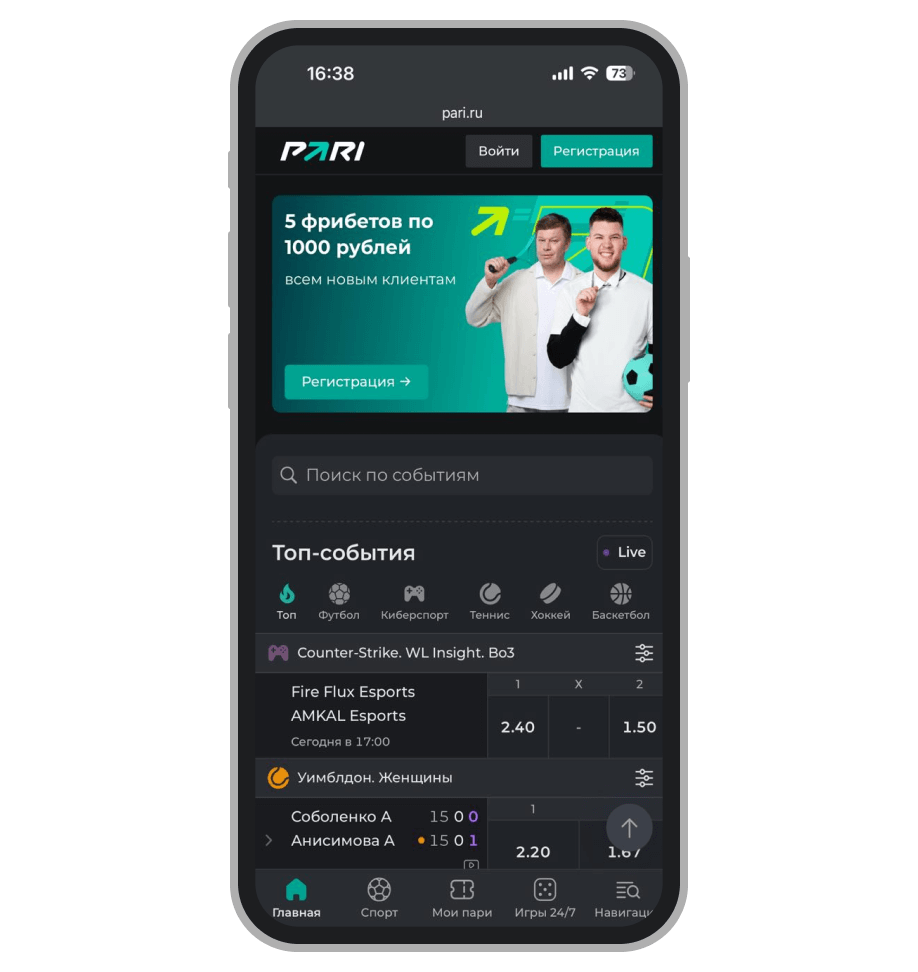 Мобильная версия БК Pari