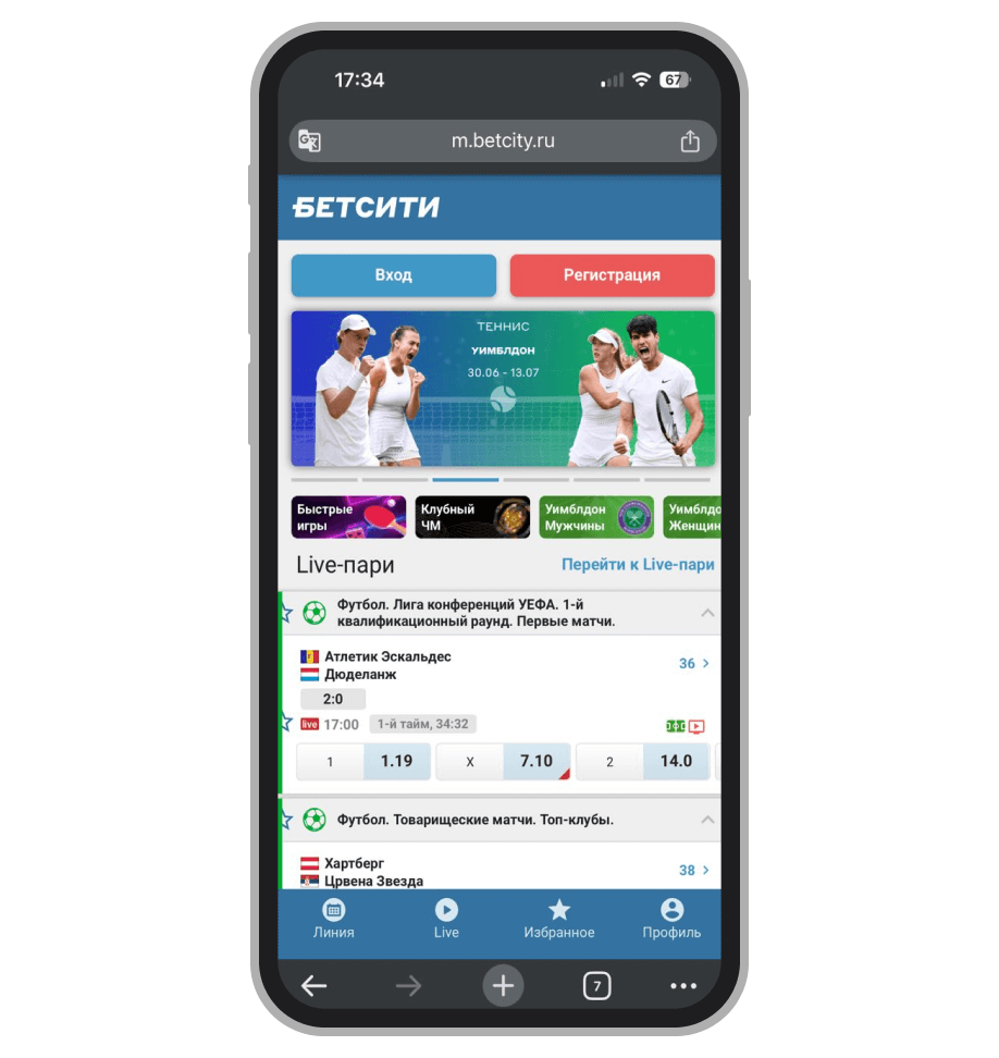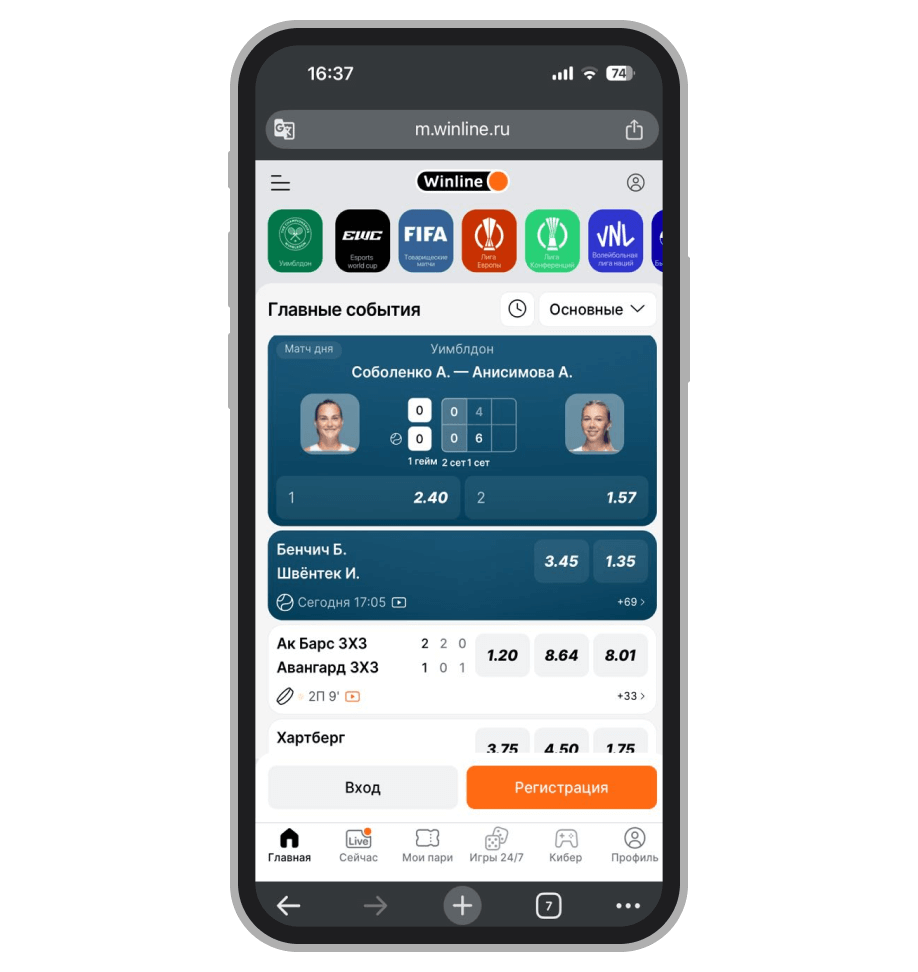 БК Winline принимает ставки на все основные виды спорта, чемпионаты и ведущие лиги. Она отлично подходит для тех, кто собирается делать ставки по ходу матча. Хотя линия Live в «Винлайн» немного проигрывает по охвату событий лидерам в этом сегменте, но этого достаточно для большинства игроков. Тем более что у БК есть много ТВ-трансляций и качественный Live-трекер, где отражены все игровые моменты. А ещё Winline предлагает бонус до 3 000 рублей за первый депозит.