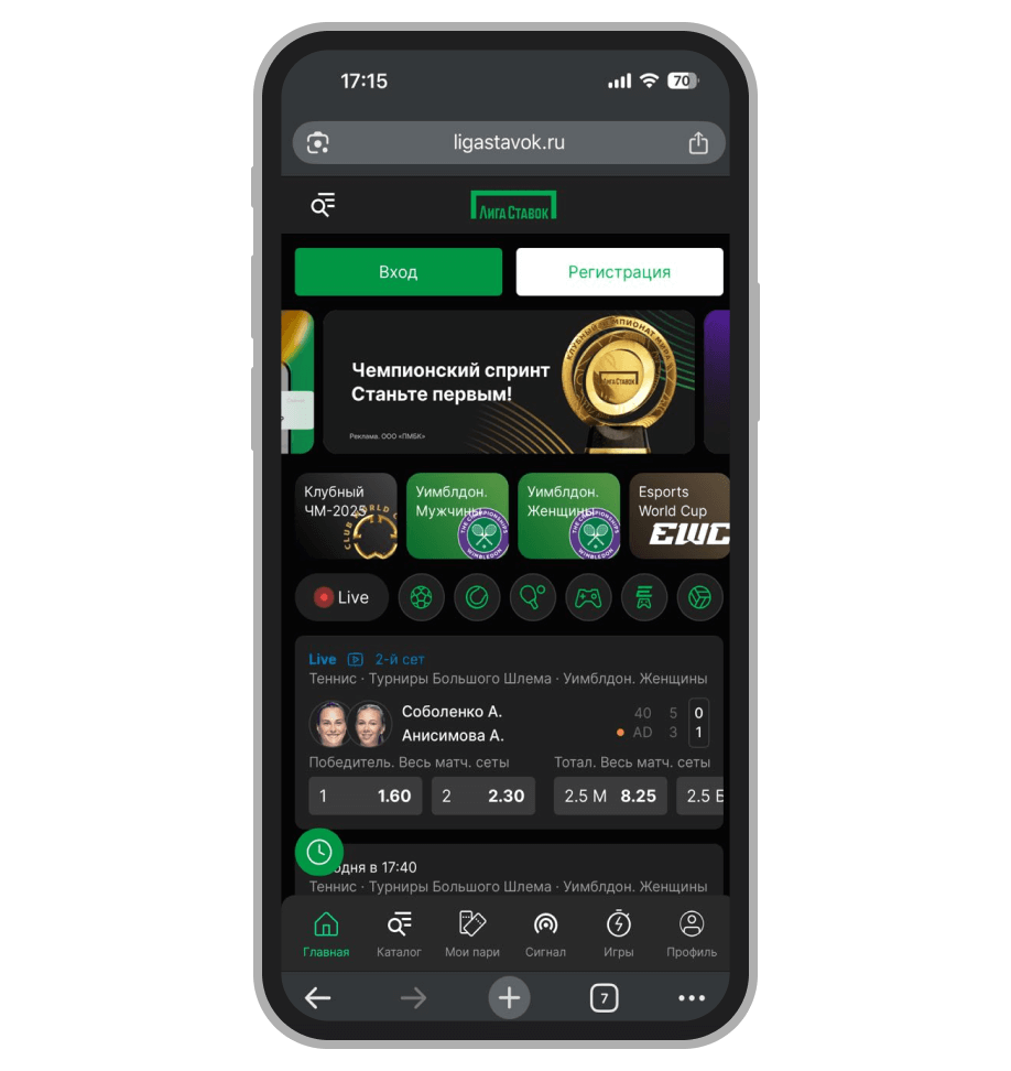 Сайт БК «Лига ставок»