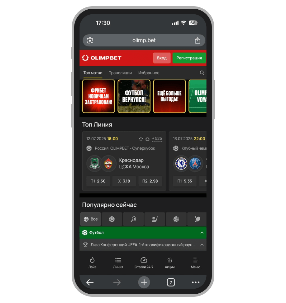 Главная страница Olimpbet